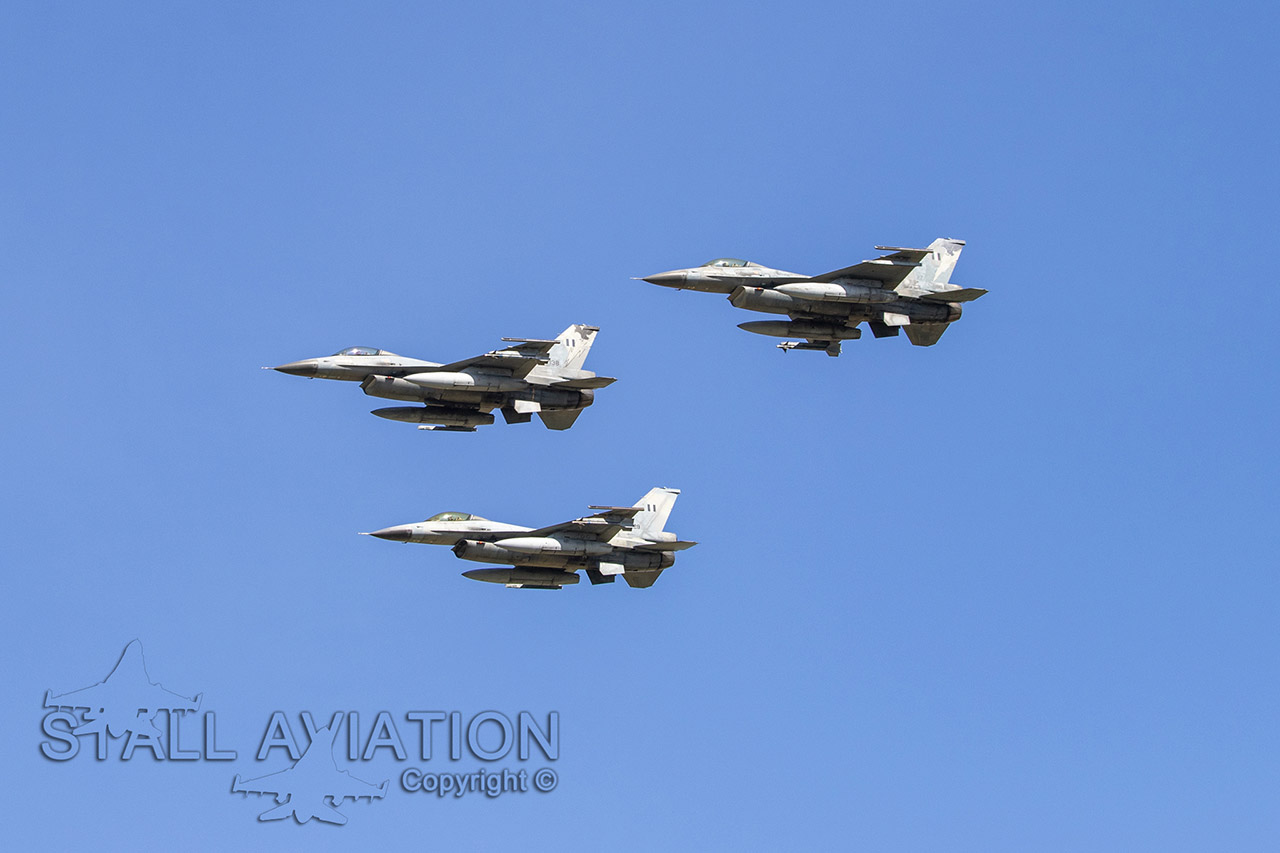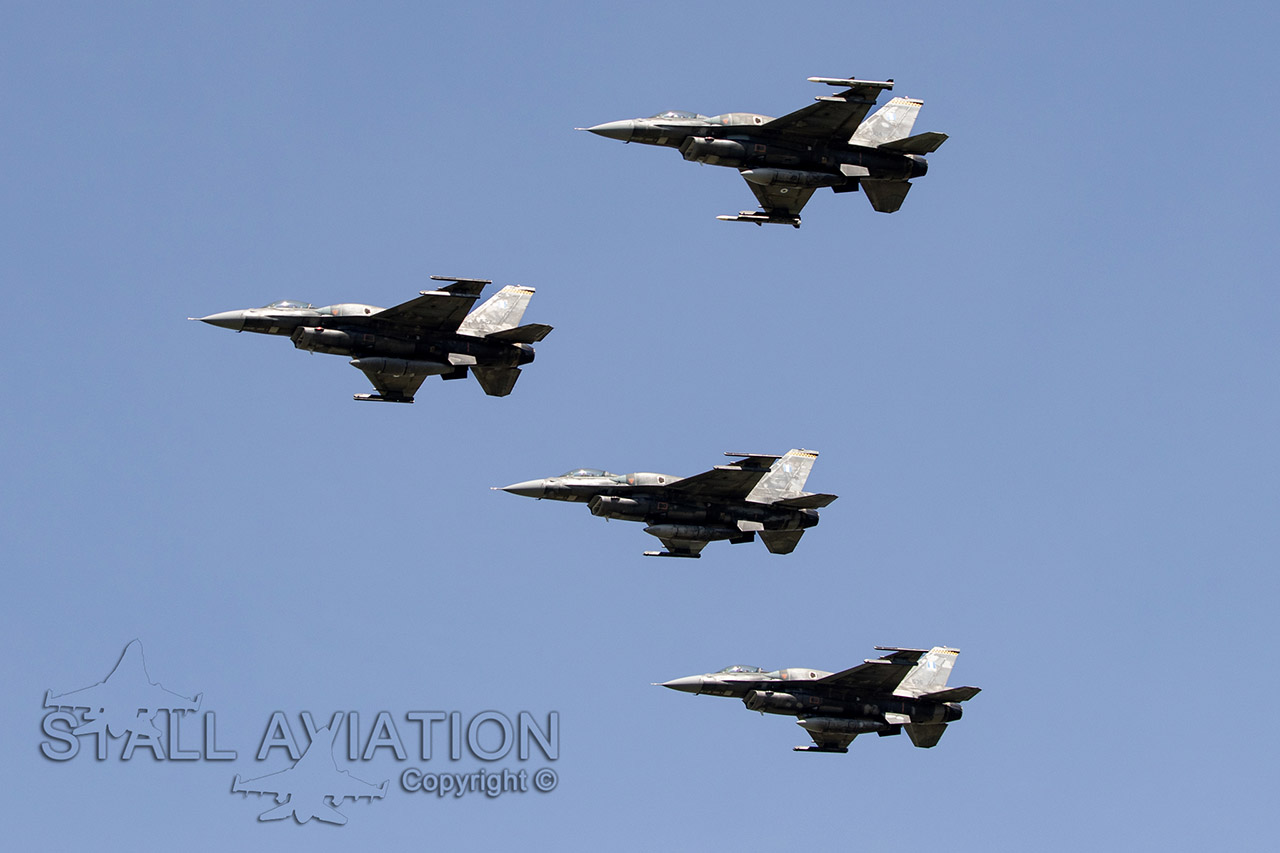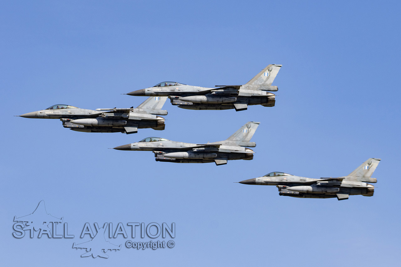 Mellem første og andet pas fandt der flere overflyvninger sted fra enheder stationeret på Araxos Air Base. De to første overflyvninger omfattede fire F-16C Block 50 fra henholdsvis 341st Fighter Squadron og 347th Fighter Squadron. Begge enheder hører under 111th Combat Wing på Nea Aghialos Air Base. Dette blev efterfulgt af fire F-16C Block 52+ fra 340th Fighter Squadron på 115th Combat Wing, som normalt har base på Souda Air Base. Den sidste formation bestod af tre F-16C Block 30 fra 330th Fighter Squadron, også underlagt 111th Combat Wing på Nea Aghialos Air Base.