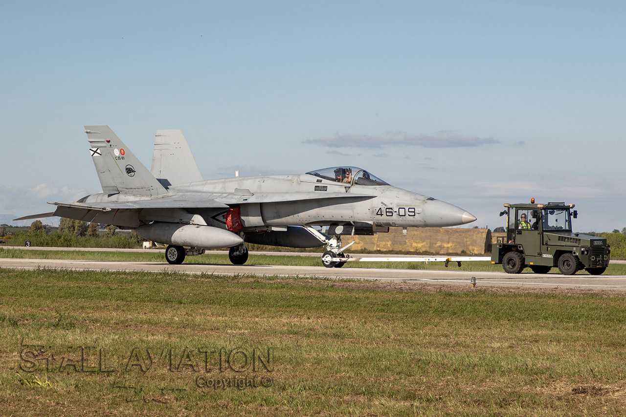 Det spanske luftvåben deltog med fem F/A-18A+ Hornet. Plustegnet efter “A” i typenummeret indikerer, at de spanske F/A-18A er blevet opgraderet til en standard, der svarer til den amerikanske flådes F/A-18C/D-versioner. Desværre deltog ingen af flyene under mediedagen.