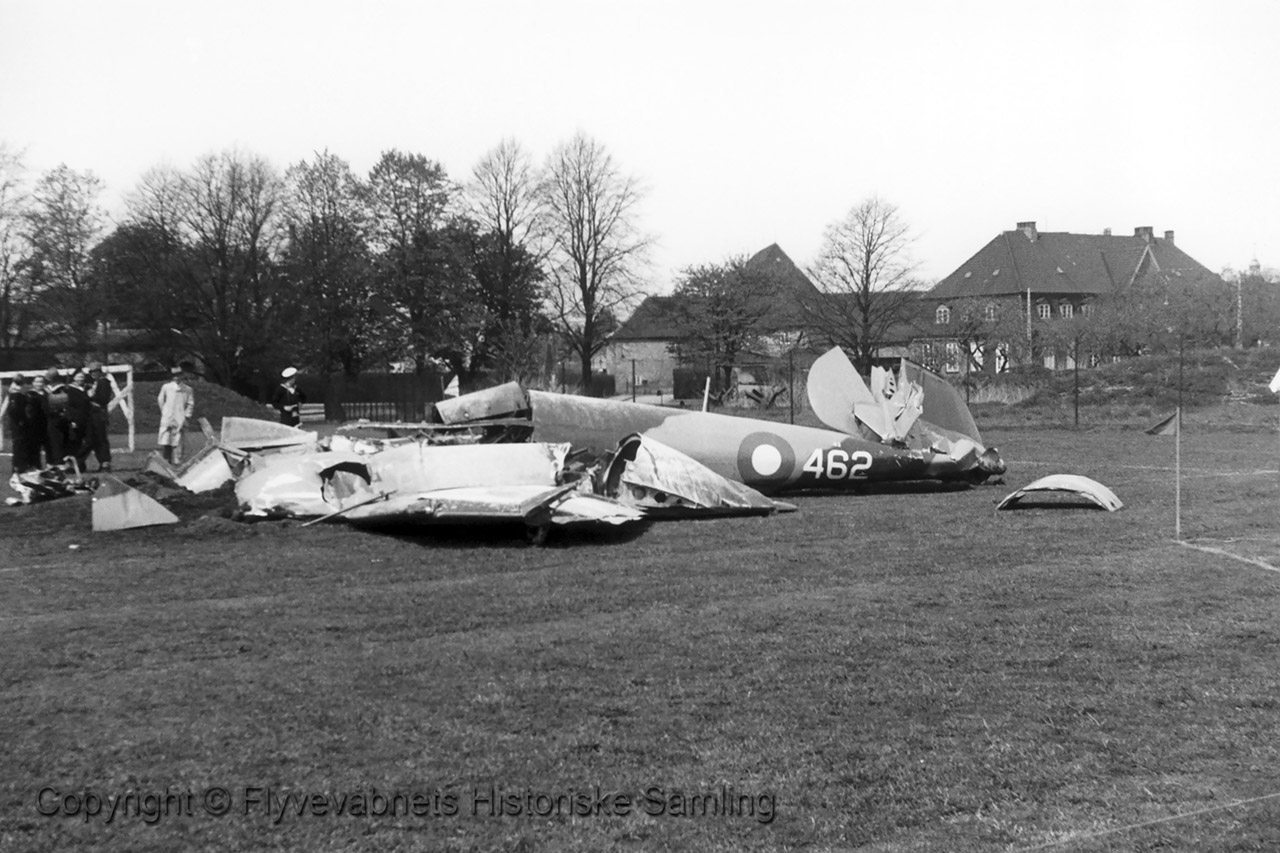 43-462 havarerede under en opvisning i anledning af 5-årsdagen for Danmarks befrielse ved Arsenaløen på Holmen.