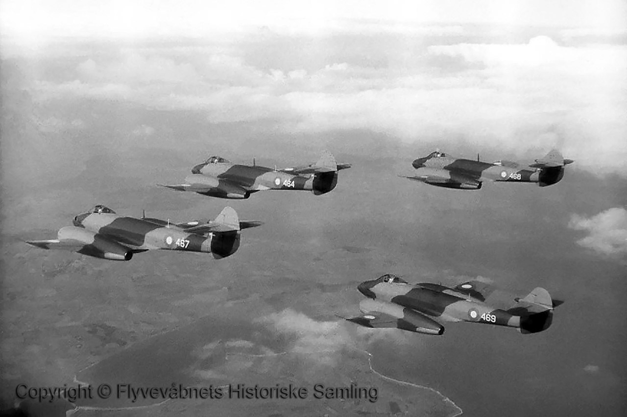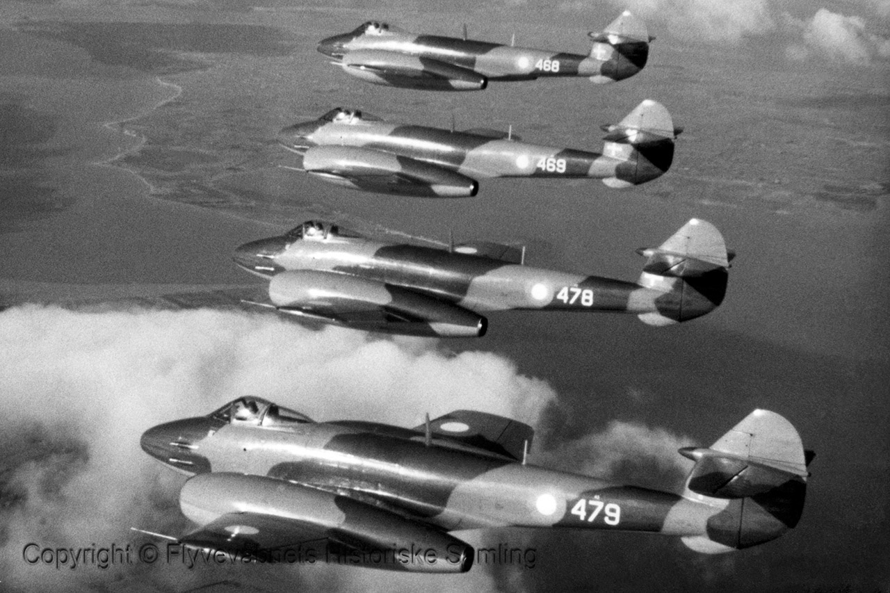 I december 1948, besøgte den danske militære Indkøbskommission England. De skulle undersøge markedet og sammenligne forskellige reaktordrevet reaktordrevne fly-typer, priser- og leveringsmuligheder. Kommissionsformanden var kommandørkaptajn Erik Rasmussen, fra Marinens Flyvevæsen.